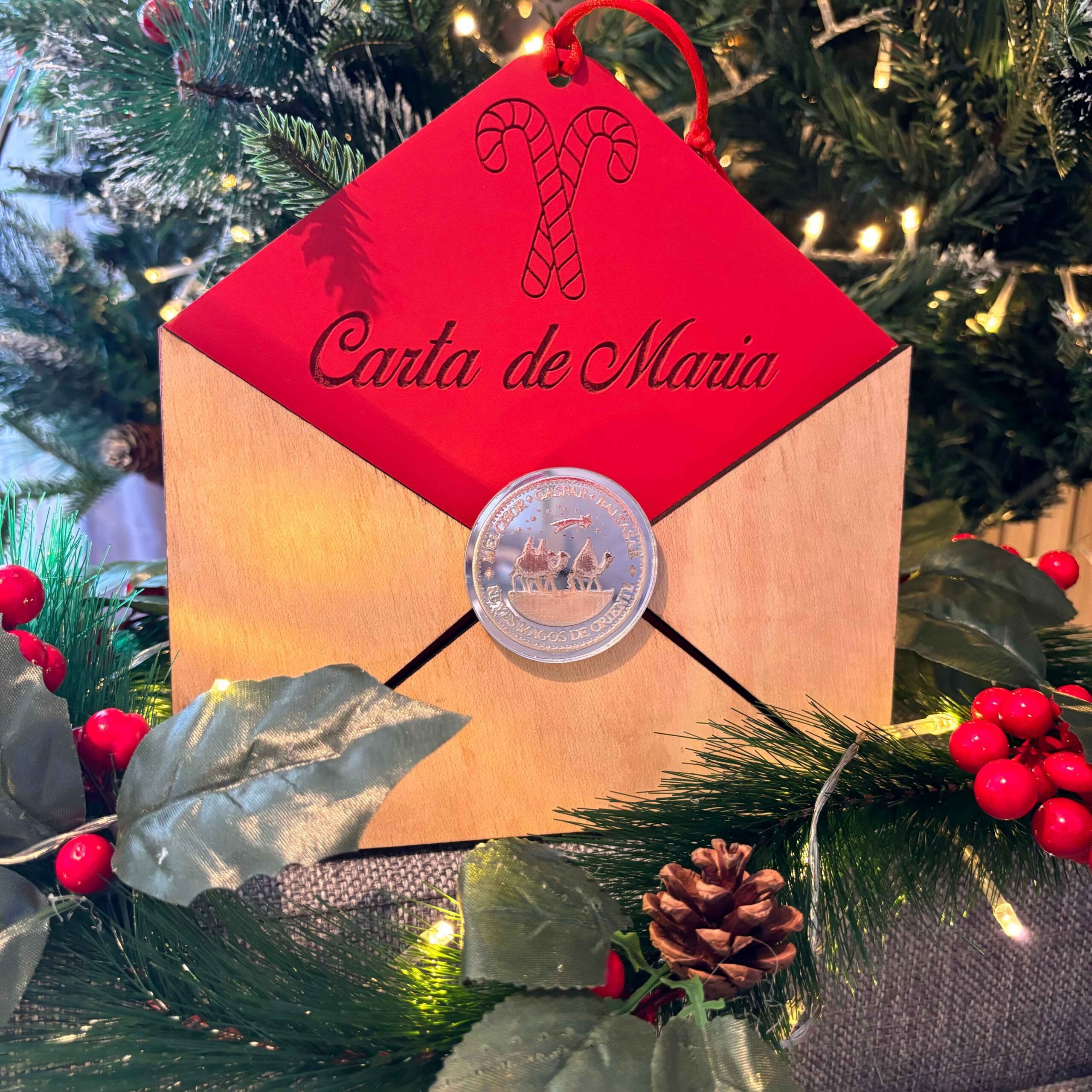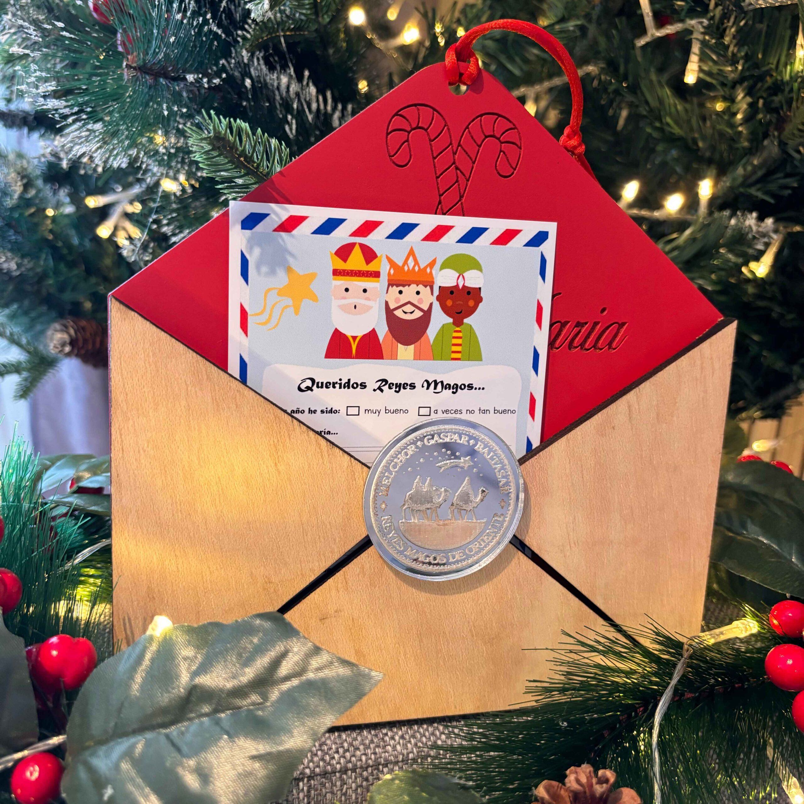 Esta Navidad, hagan que la ilusión de los niños sea inolvidable con nuestra Bola de Navidad de Madera «Carta a los Reyes Magos». Es un regalo que perdurará en su memoria durante toda la vida.