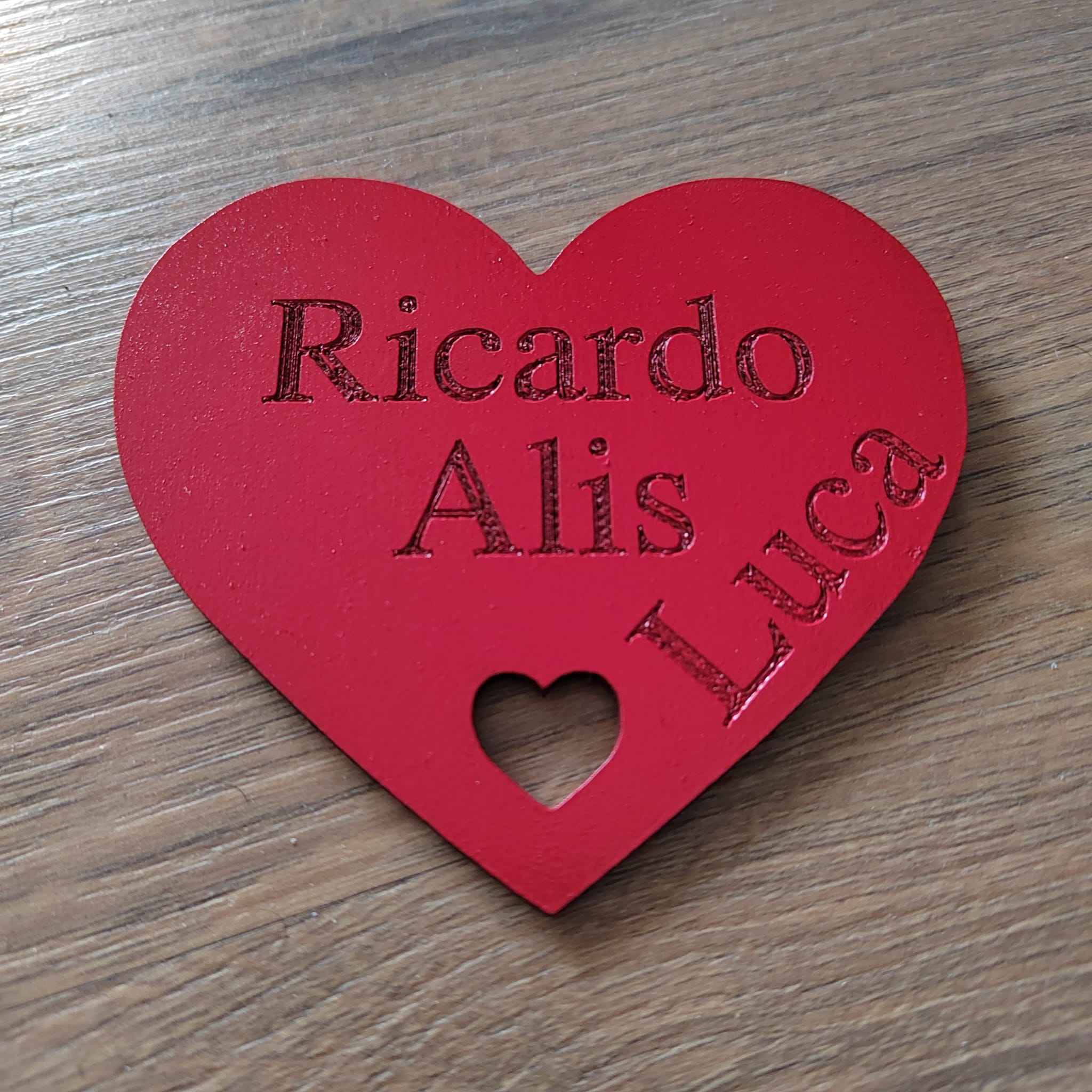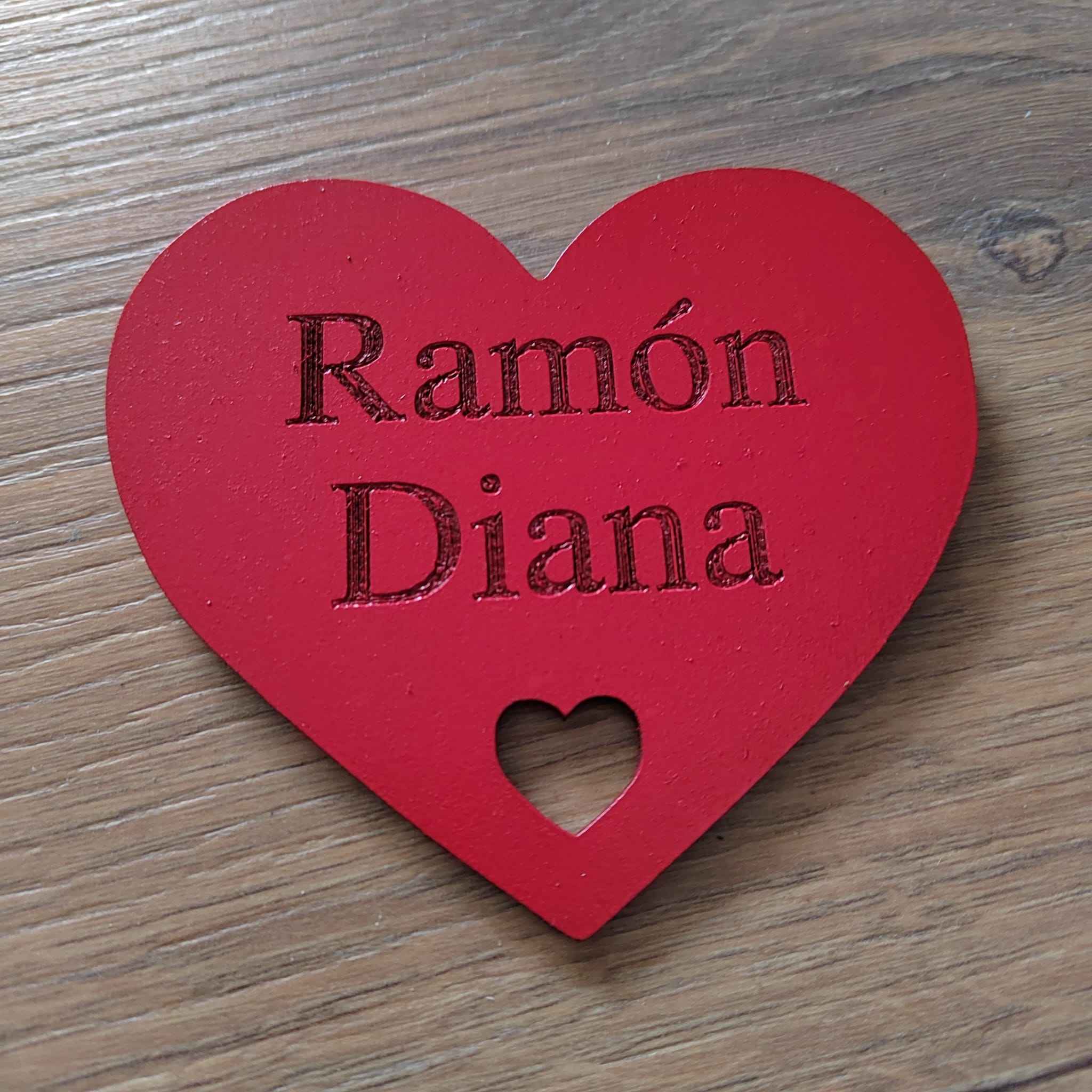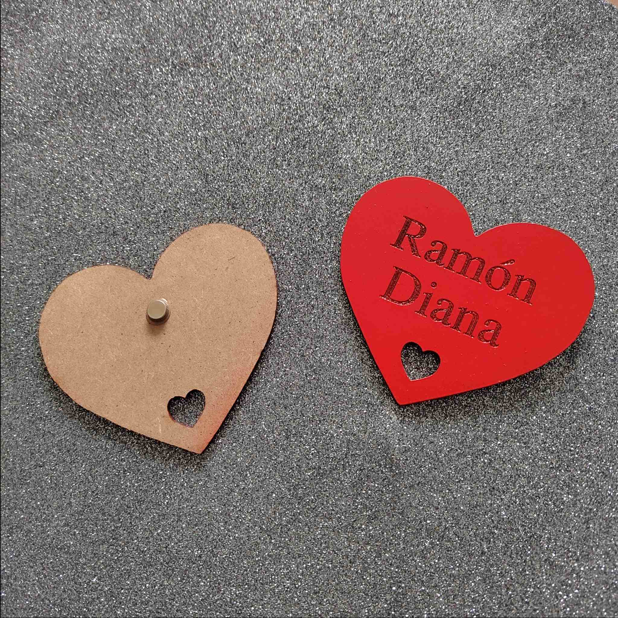 ¿Quieres un regalo especial y personalizado para tu pareja? Nuestro Corazón con imán para la nevera es una opción perfecta. Con las opciones de personalizarlo con vuestros nombres y con la opción de colgarlo con cuerda, también puedes mostrarlo como una decoración en tu hogar. Con un tamaño de 13cm x 11,5cm, este corazón es el tamaño perfecto para poner en la nevera o en cualquier puerta o rincón de la casa. Es el regalo ideal para aniversarios, cumpleaños o San Valentín. ¡Sorprende a tu amor con este corazón personalizado y muestra lo mucho que le quieres!