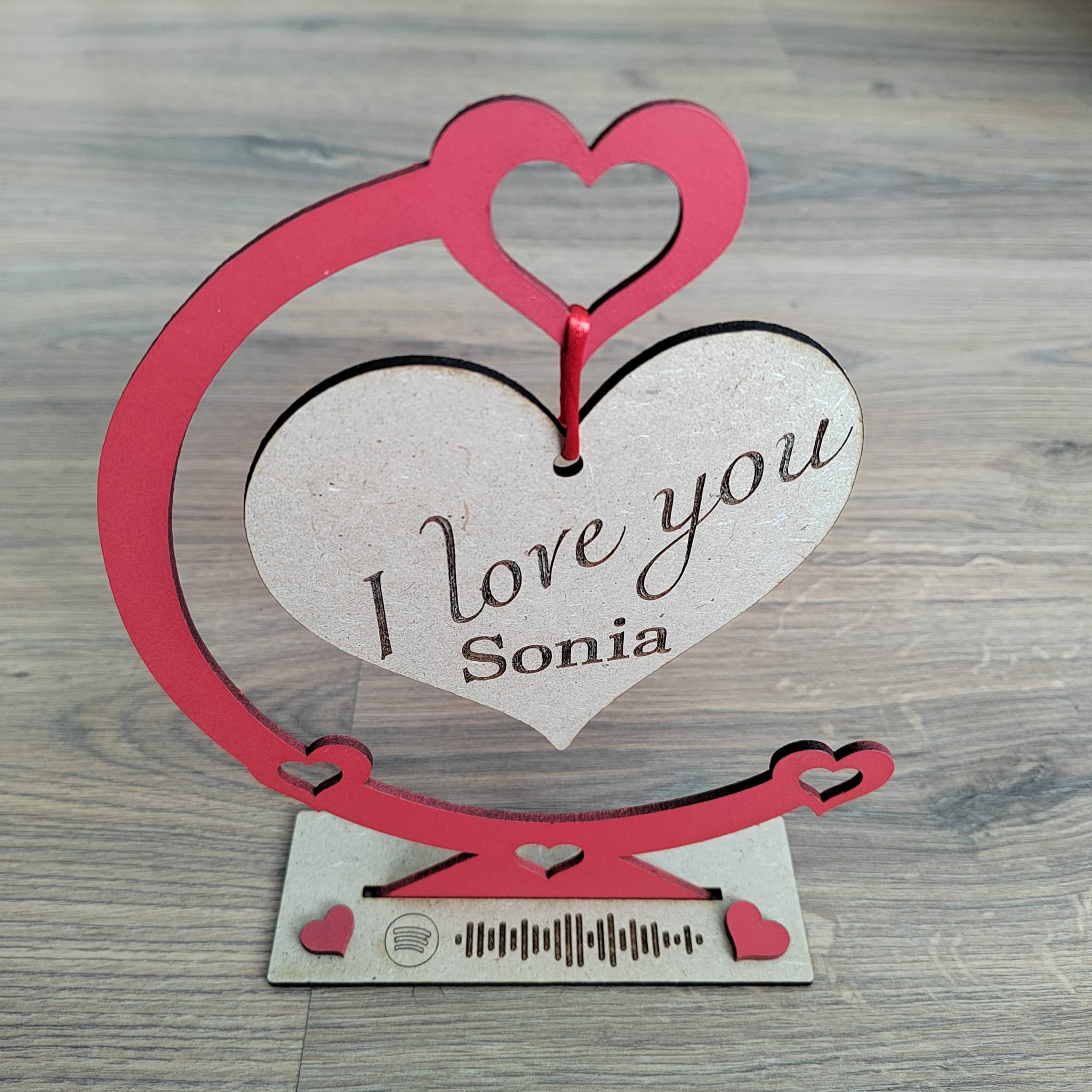 El soporte colgante «I Love You» personalizado es un regalo romántico y único para esa persona especial. Con su nombre grabado y dimensiones de 19,5cm x 16cm x 4cm, este soporte es una pieza decorativa que añadirá un toque de amor a cualquier espacio. Además, puedes personalizarlo aún más al incluir una canción de Spotify, con un código para buscarla fácilmente. ¡Haz que ese ser querido se sienta amado y especial con este soporte colgante «I Love You» personalizado!