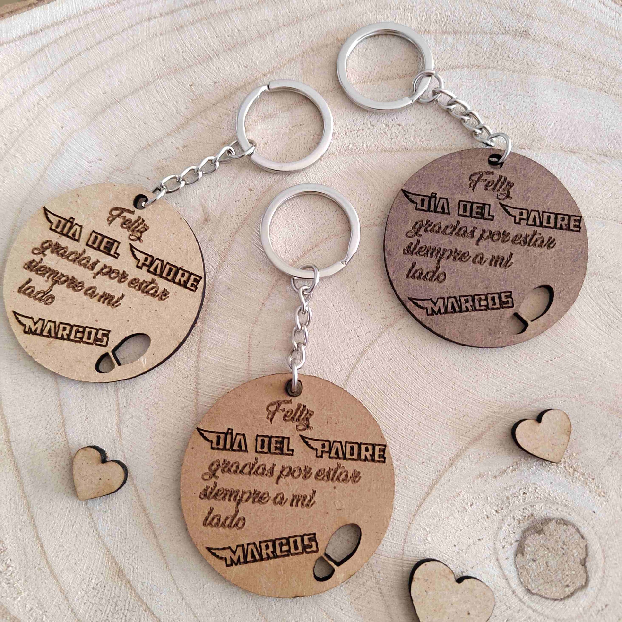 ¡Celebra el Día del Padre con un regalo único y especial! Te presentamos nuestros llaveros de madera personalizados para papá. Hechos a mano con madera de alta calidad, estos llaveros son la opción perfecta para agregar un toque natural y rústico a las llaves de tu papá. Cada llavero viene grabado con un diseño personalizado para hacerlo verdaderamente único.