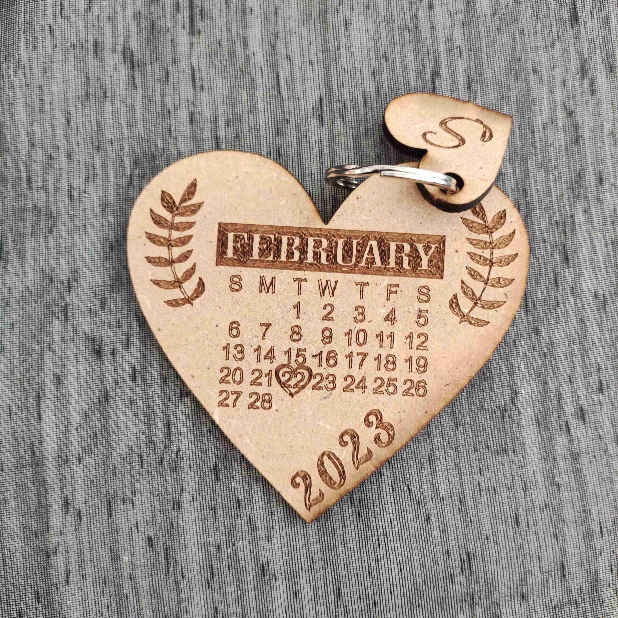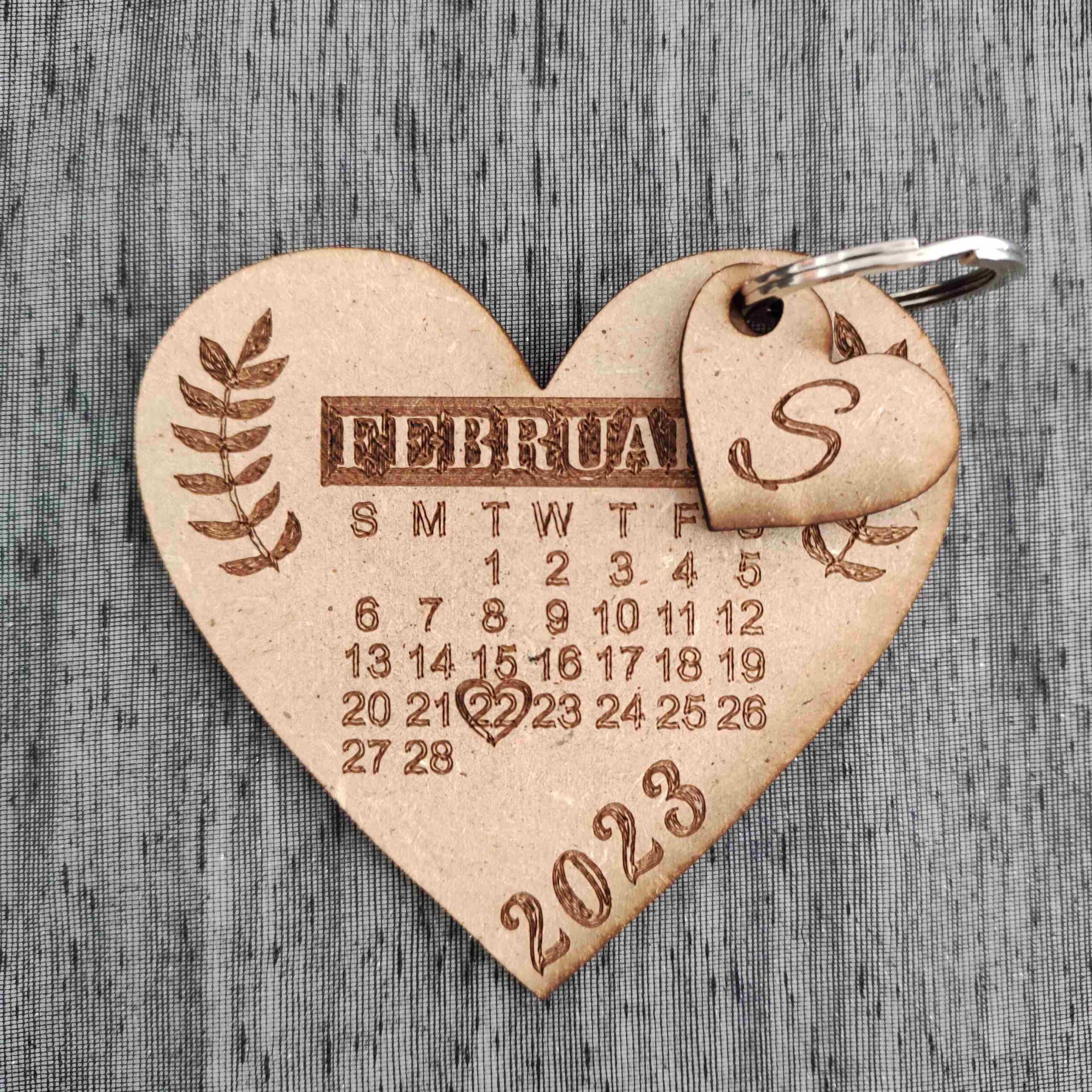 Llavero madera personalizado – Corazón mes