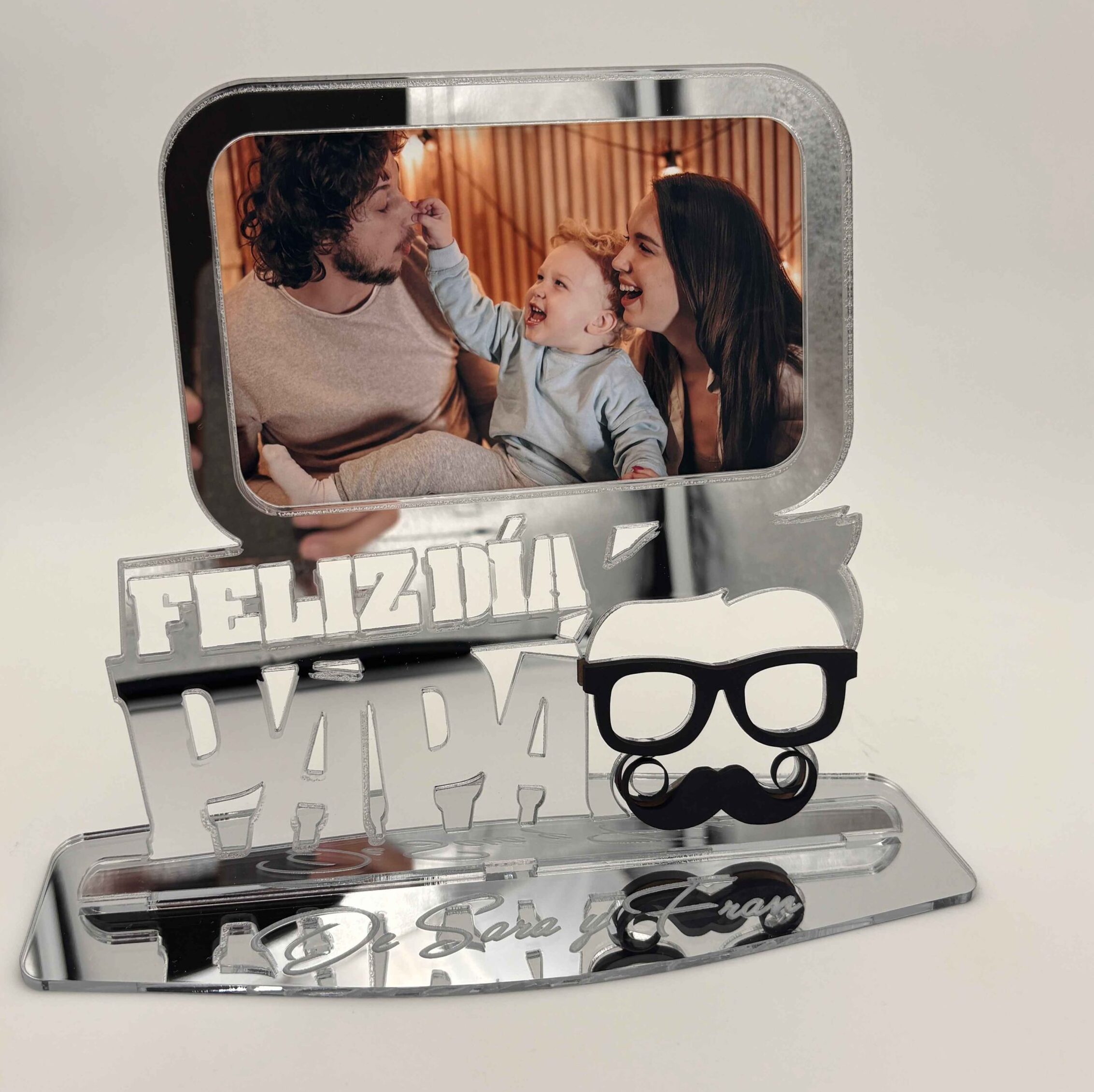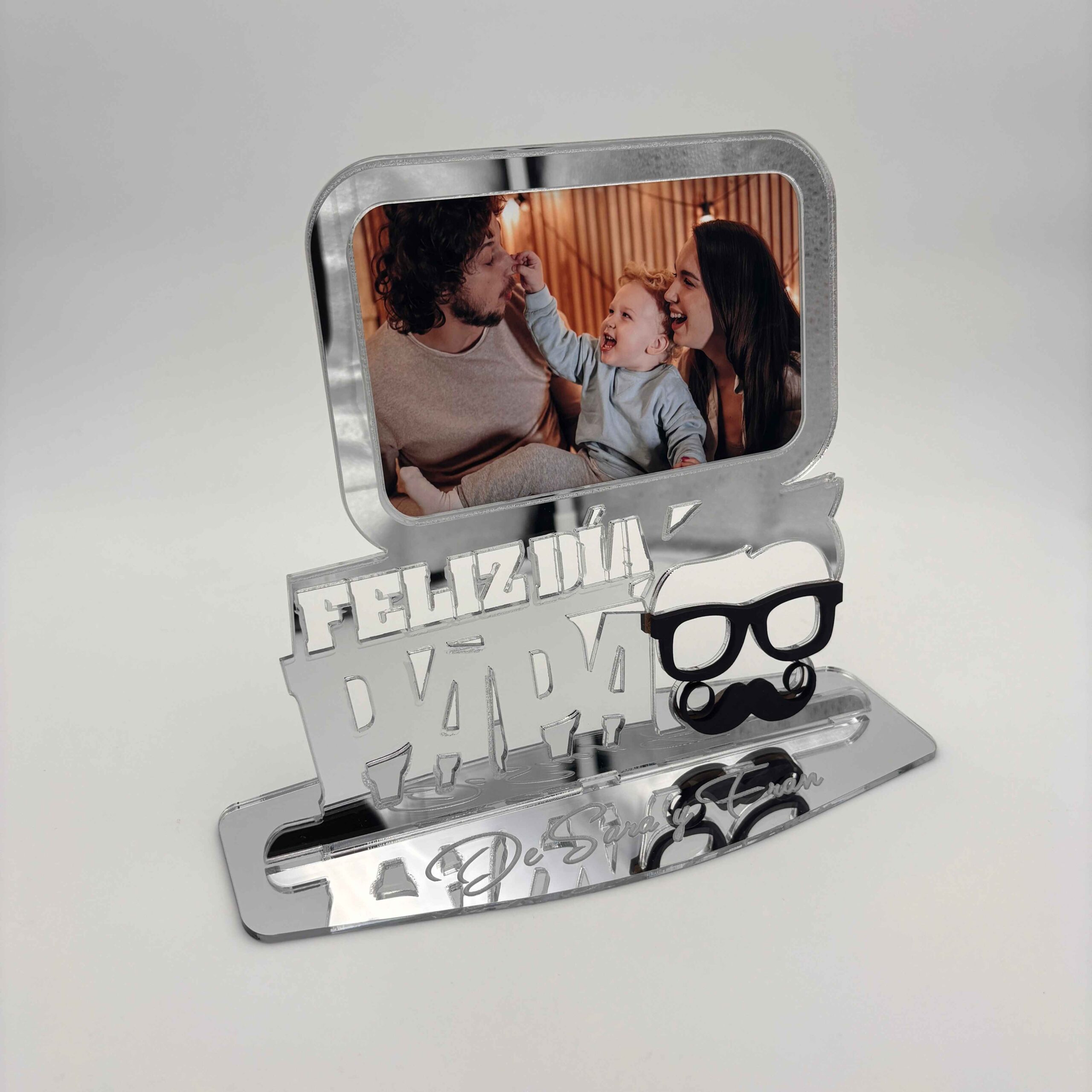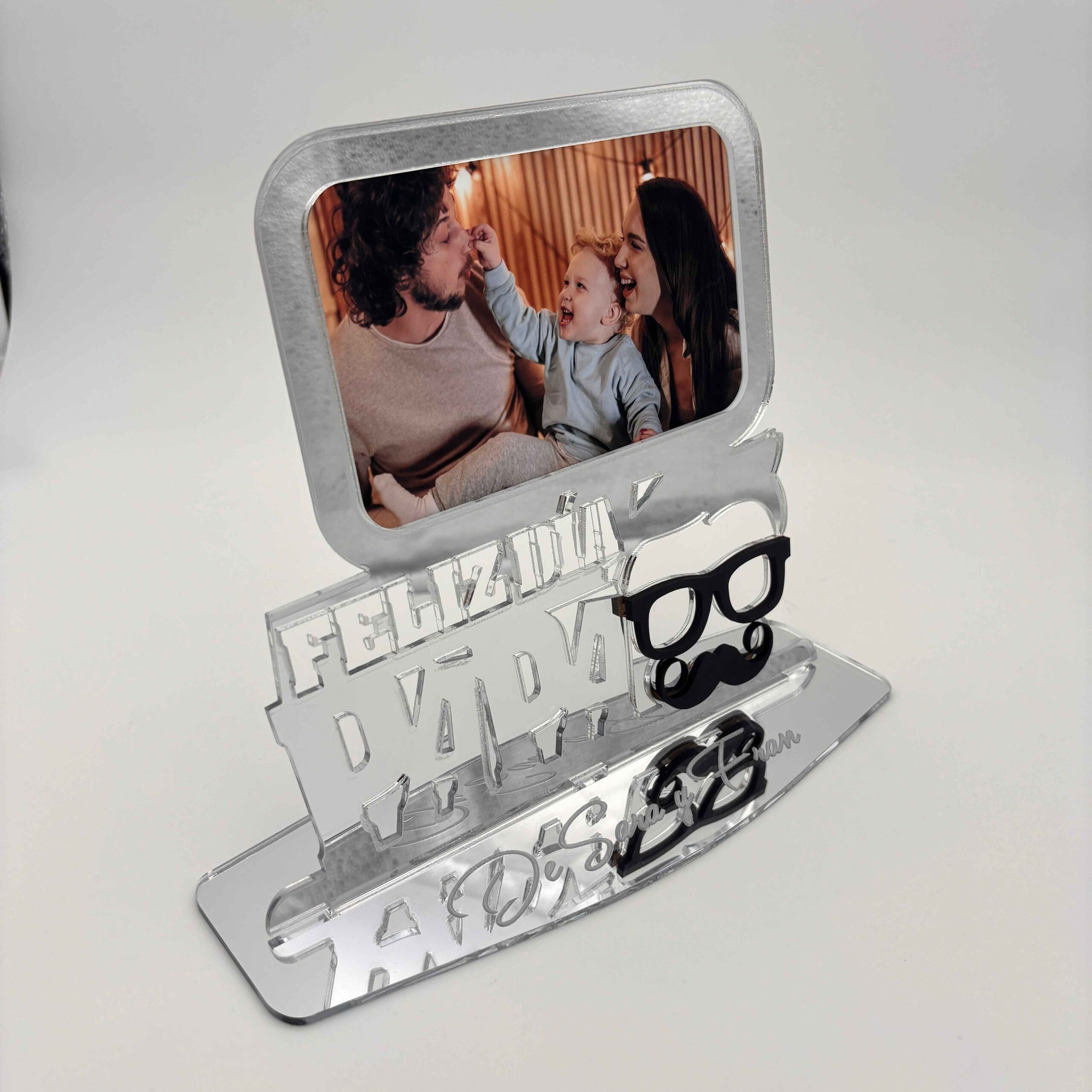 ¡Captura los momentos más preciados con nuestro Exclusivo Marco de Fotos para el Día del Padre en madera MDF o metacrilato con efecto espejo en oro o plata! Este elegante marco no solo enmarca tus recuerdos, sino que también añade un toque de lujo personalizado.