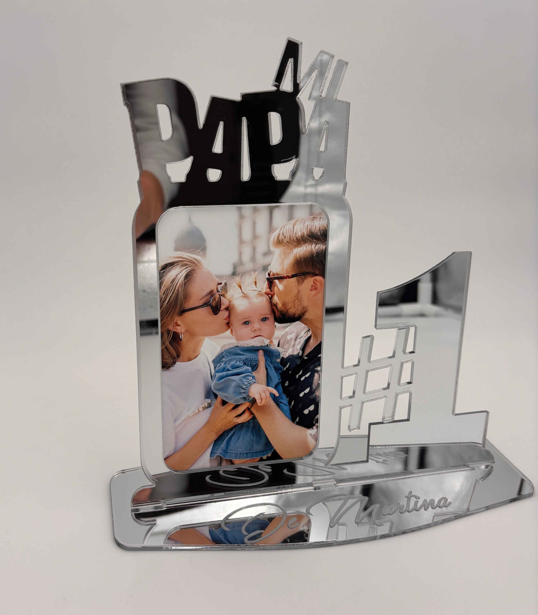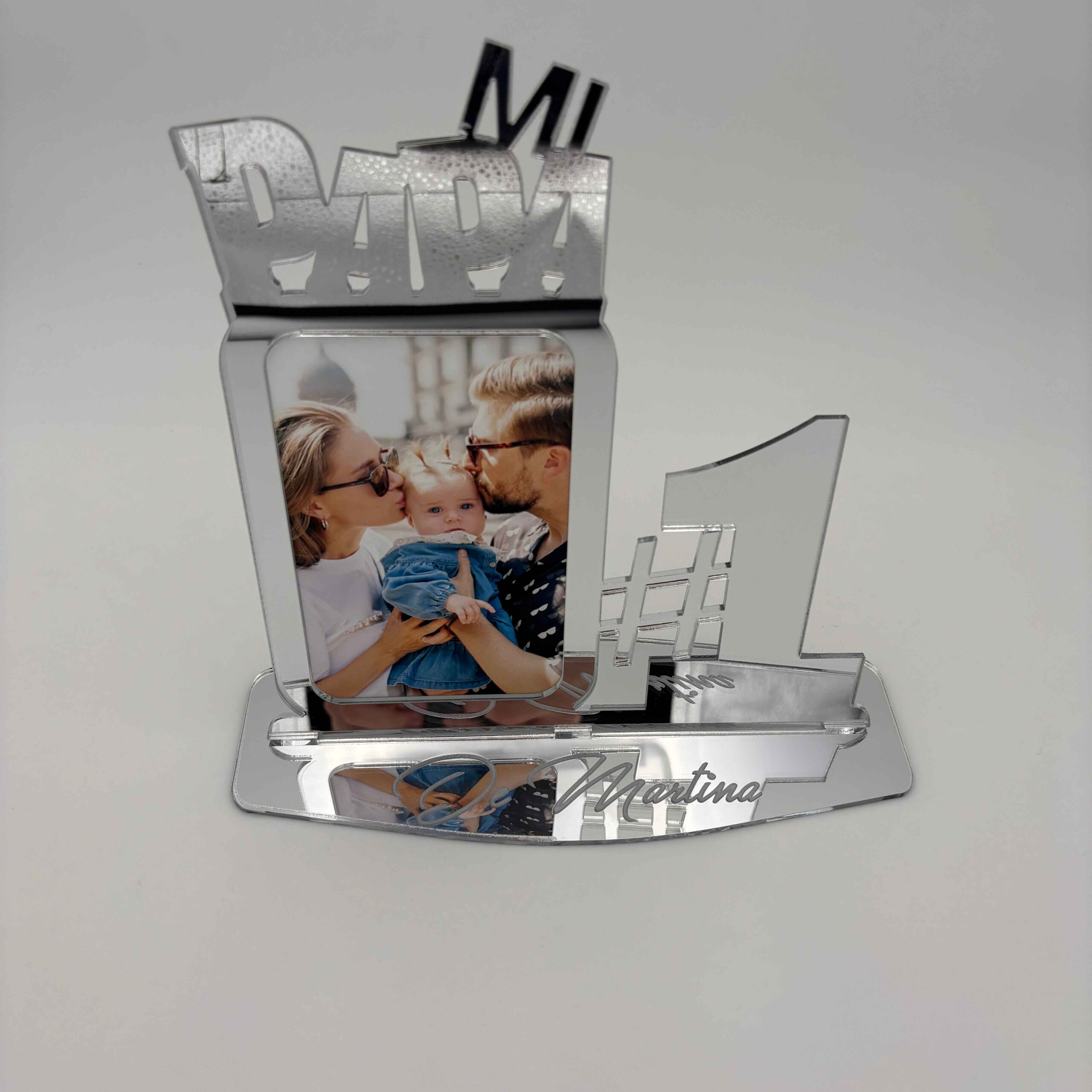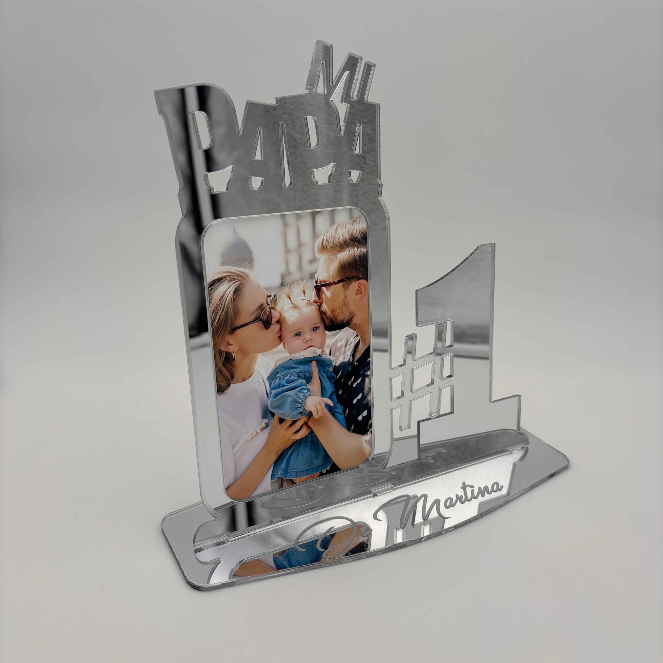 ¡Captura los momentos más preciados con nuestro Exclusivo Marco de Fotos para el Día del Padre en madera MDF o metacrilato con efecto espejo en oro o plata! Este elegante marco no solo enmarca tus recuerdos, sino que también añade un toque de lujo personalizado.