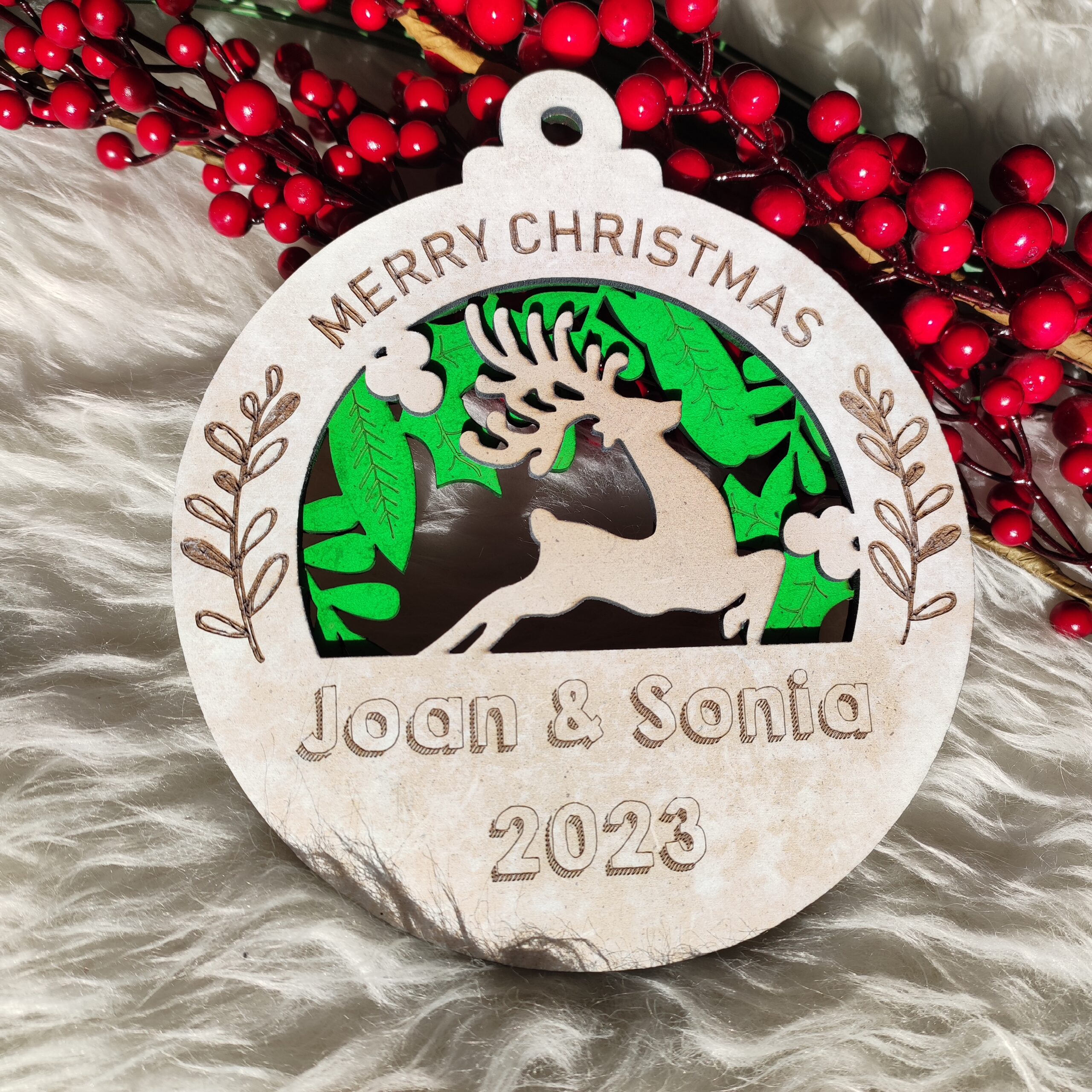 Mega Bola Navidad de madera. Dimensiones 17cm x 20cm.