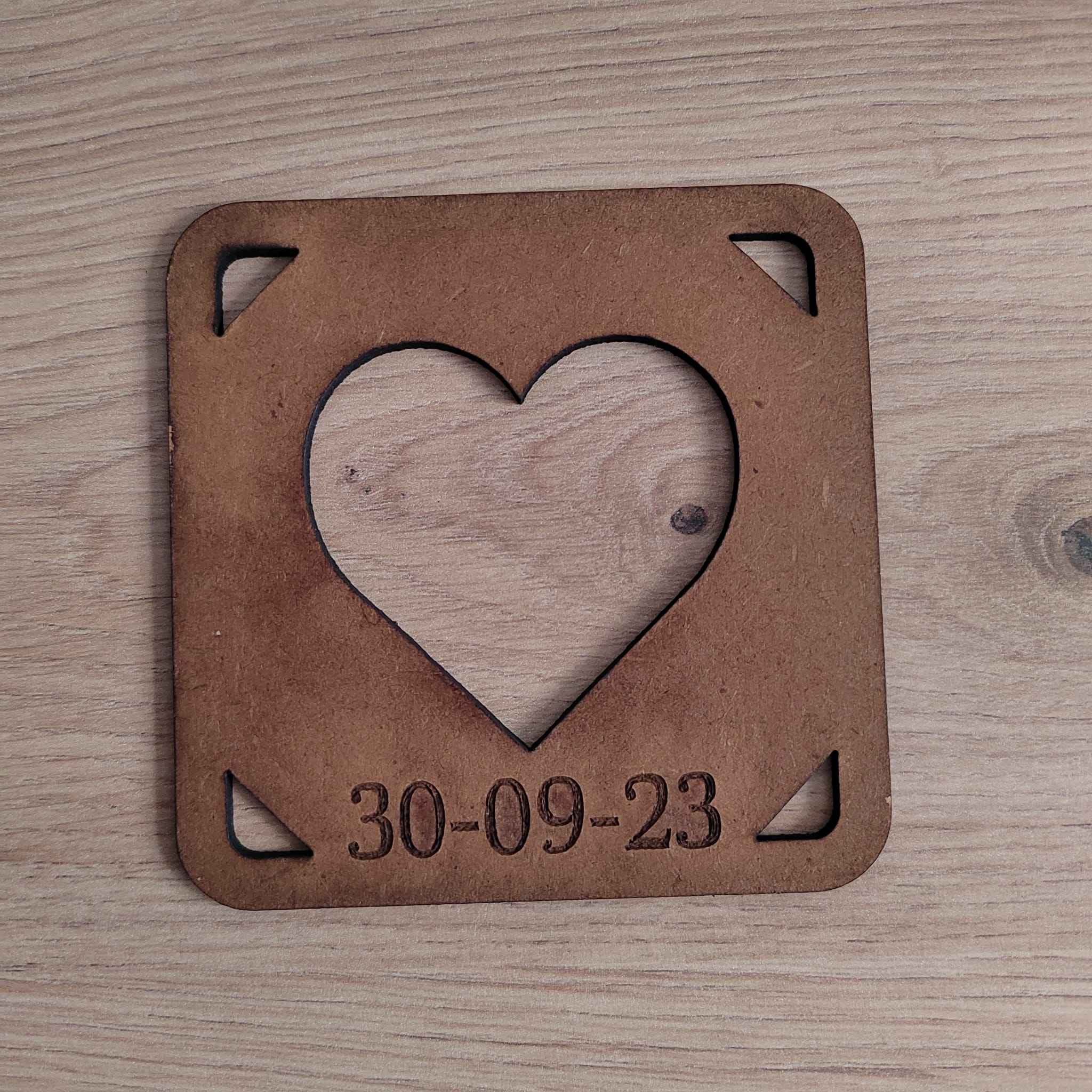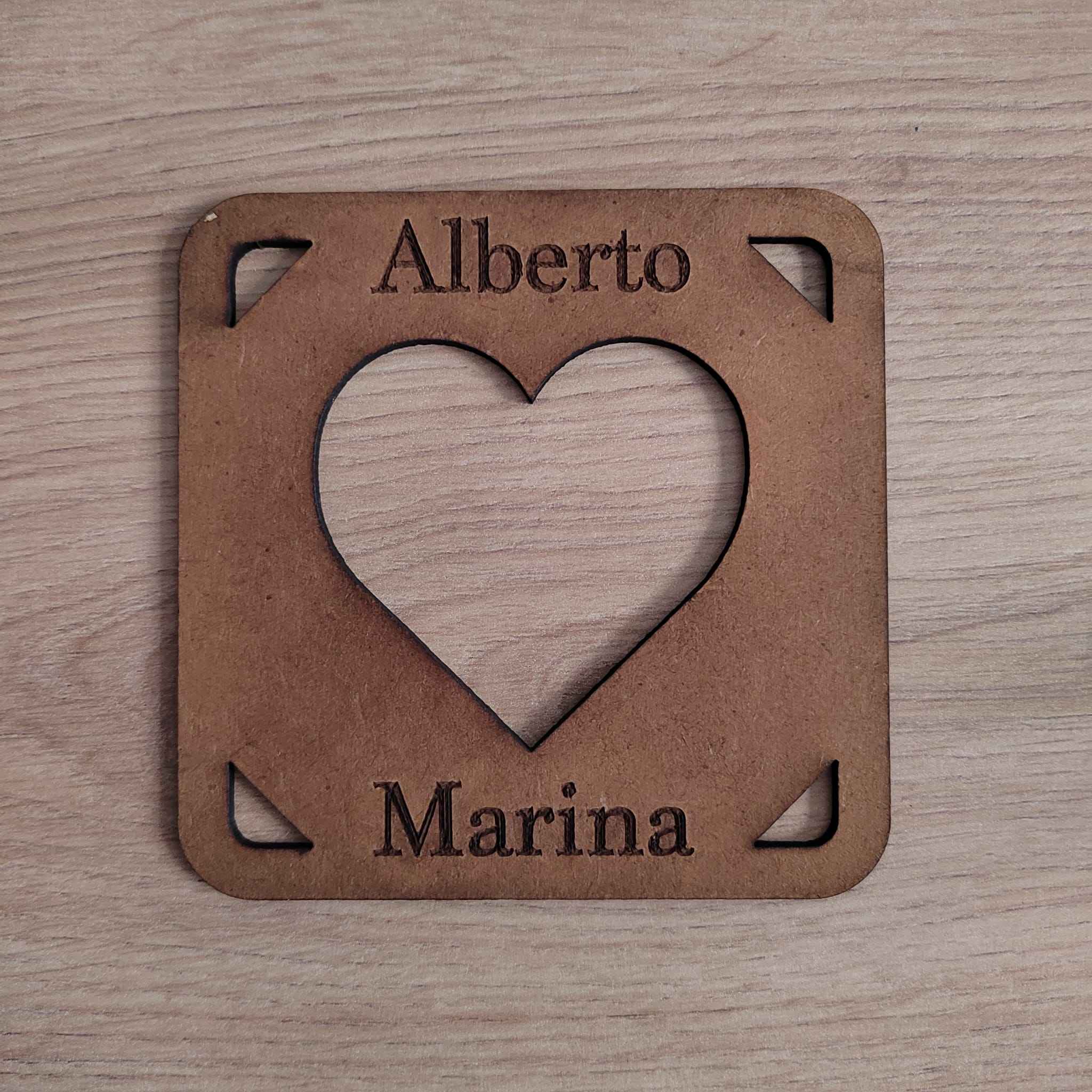 Los posavasos en forma de corazón de madera son un accesorio de mesa encantador y único. Con dimensiones de 10cm x 10cm, estos posavasos protegerán tu mesa de manchas y arañazos, mientras añaden un toque de amor y personalidad. Además, puedes personalizarlos con tus nombres y una fecha importante para crear un recuerdo duradero y especial. ¡Añade un toque de amor a tus bebidas con estos posavasos de corazón de madera personalizados!