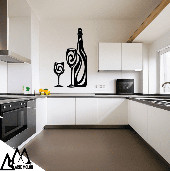 - 100cm x 56 cm: La silueta de la botella de vino y una copa tiene dimensiones de 100cm x 35cm, mientras que la segunda copa mide 43cm x 19cm