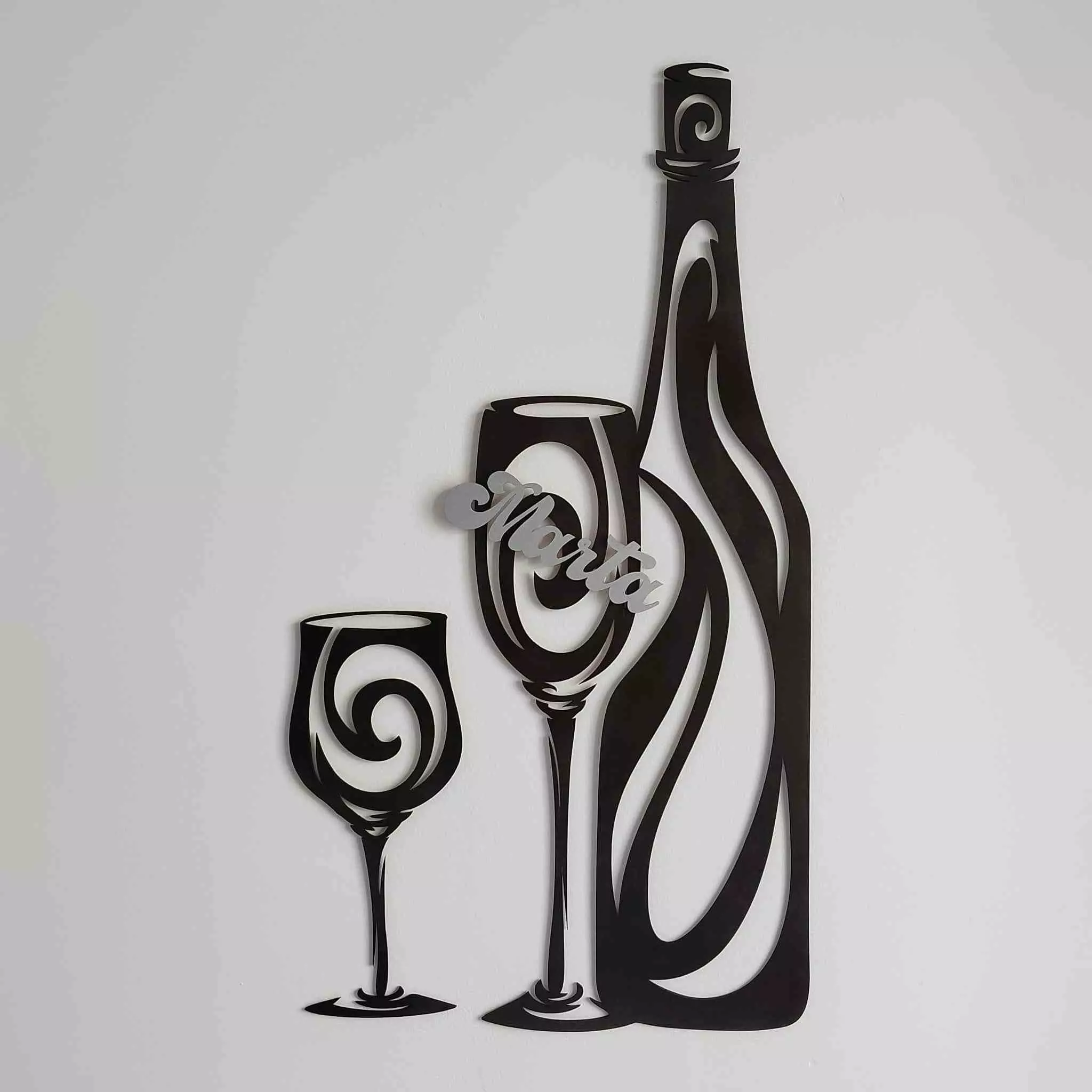 ¡Agrega un toque de elegancia y sofisticación a tu hogar con nuestra cautivadora silueta de vino de madera con dos copas! Esta impresionante pieza de arte es perfecta para los amantes del vino y añade un toque de encanto a cualquier espacio.