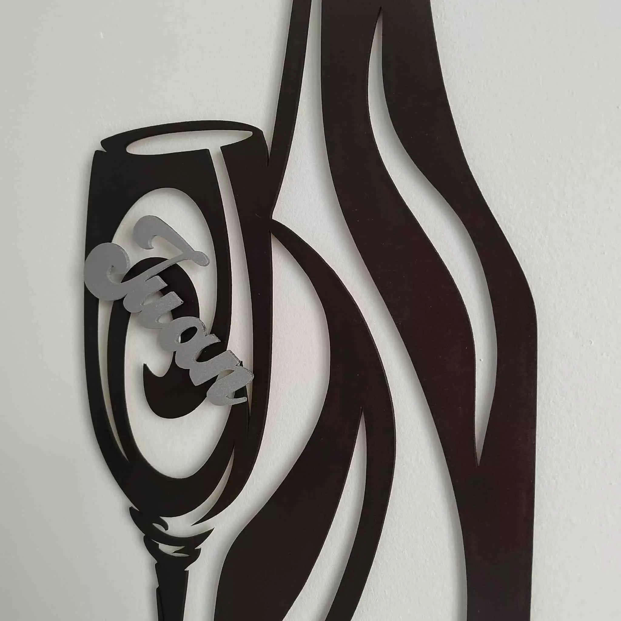 Lo mejor de todo es que puedes personalizar esta silueta de madera añadiendo uno o dos nombres. Imagina tener el nombre de tu bodega favorita, tu apellido o incluso tu propio nombre tallado en esta obra de arte única. Será un testimonio personalizado de tu amor por el vino y un verdadero punto focal en tu decoración. En nuestra tienda en línea, encontrarás diferentes opciones de personalización disponibles. Puedes elegir agregar uno o dos nombres a la silueta de vino de madera, asegurándote de que sea una pieza verdaderamente única y especial.