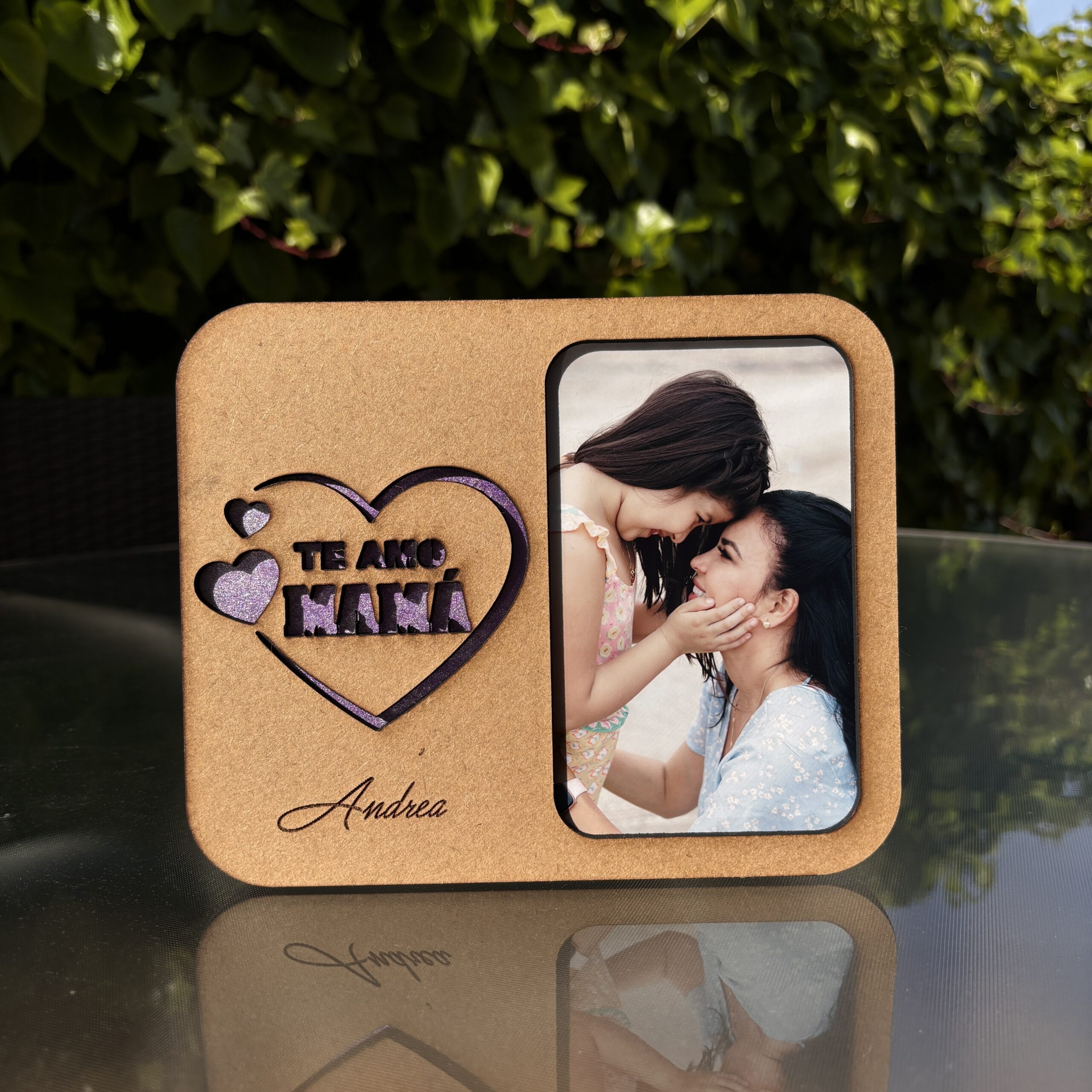 Con la opción de añadir la foto más preciada y el nombre especial de tu mamá, este marco se convierte en una pieza única que captura la esencia del amor maternal. Imagina su rostro iluminado al ver esa imagen tan querida inmortalizada en un marco hecho exclusivamente para ella.